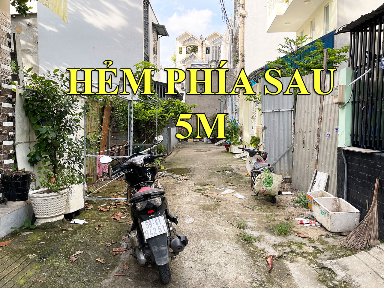 • Hai mặt hẻm xe hơi, hẻm nhựa trước đất 4,1m hẻm sau xi măng 5m