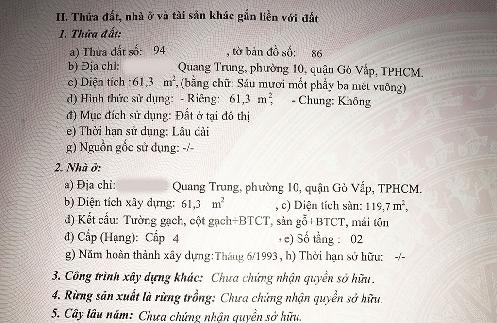 • Tình trạng nhà cấp 4 có gác gỗ suốt, 3 phòng ngủ 2 nhà vệ sinh