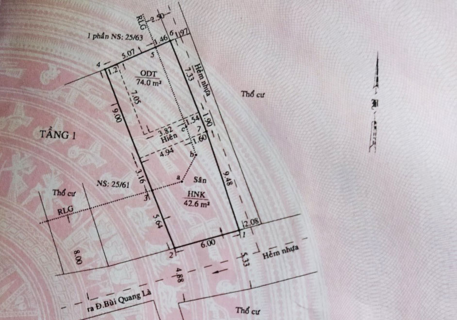 • Đường trước nhà hẻm nhựa 5m, hẻm bên hông 2m